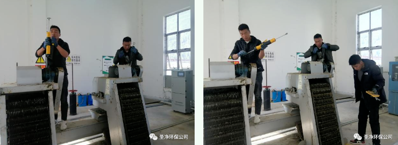 耙齒鏈運(yùn)轉(zhuǎn)到設(shè)備的上部時(shí),由于槽輪和彎軌的導(dǎo)向,使每組耙齒之間產(chǎn)生相對(duì)自清運(yùn)動(dòng),絕大部分固體物質(zhì)靠重力落下。另一部分則依靠清掃器的反向運(yùn)動(dòng)把粘在耙齒上的雜物清掃干凈。
